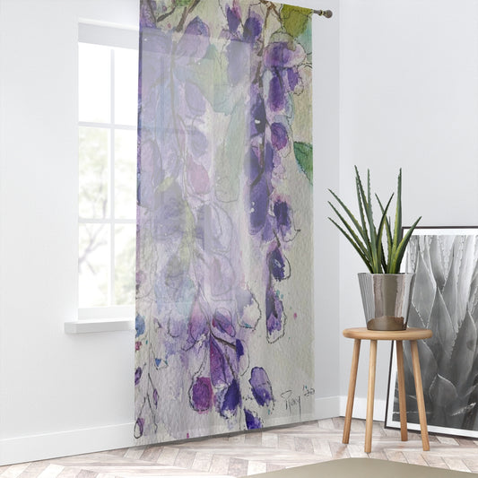 Purple Wisteria print on 84 x 50 inch Sheer Window Curtain