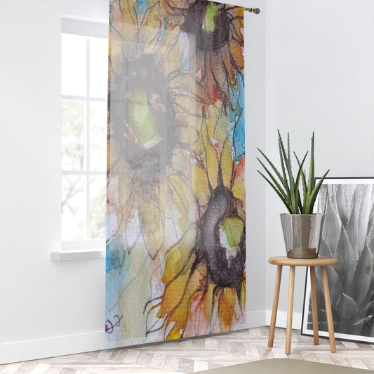 Sunflowers print on 84 x 50 inch Sheer Window Curtain