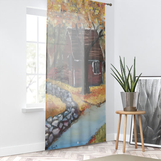 Autumn Barn print on 84 x 50 inch Sheer Window Curtain