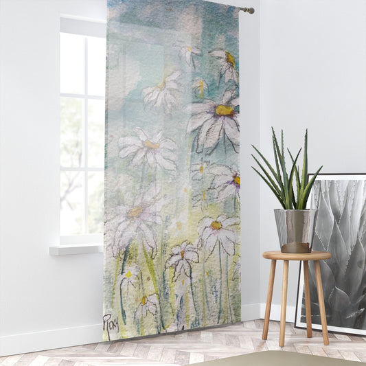 Daisies print on 84 x 50 inch Sheer Window Curtain