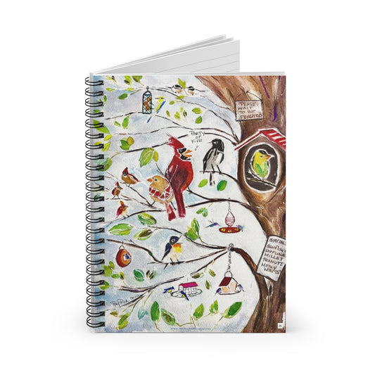 Original Loose Floral Watercolor Painting Whimsical Birds Cardinals printed on Spiral Notebook - Ruled Lined- Mom Friend Student gift