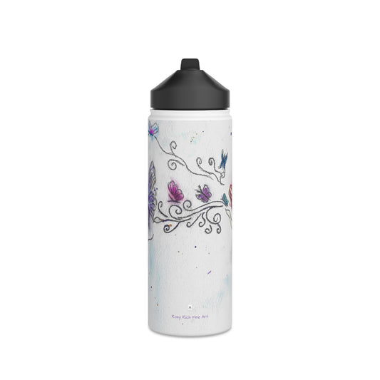 Pretty Perch- Whimsical Hummingbird- Stainless Steel Water Bottle, Standard Lid