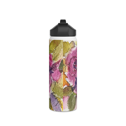 Pink Roses Stainless Steel Water Bottle, Standard Lid