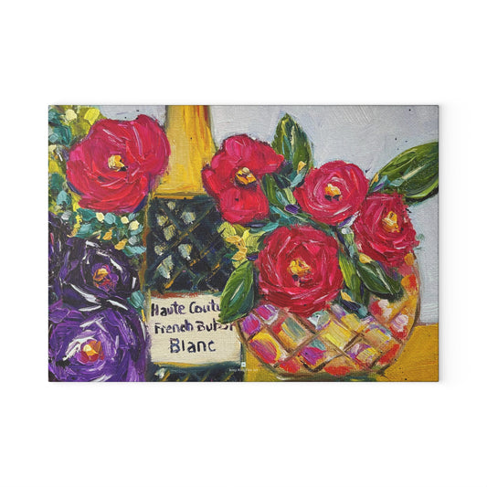 French Bubbles - Champagne and Flowers- Glass Cutting Board