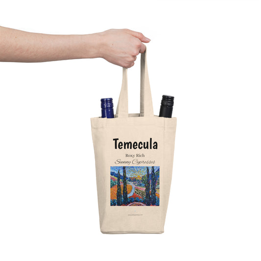 Temecula Double Wine Tote Bag featuring "Sunny Cypresses" painting