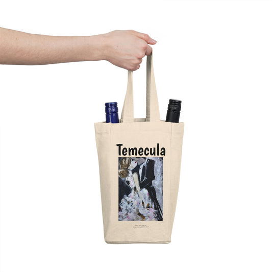 Temecula Double Wine Tote Bag featuring "Love" painting Wedding Couple Kissing