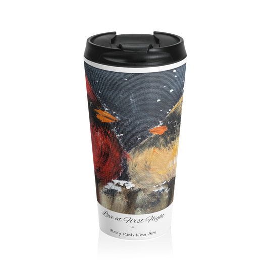 Love at First Flight Male and Female Cardinals Winter Stainless Steel Travel Mug