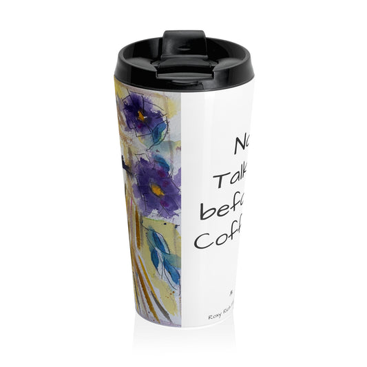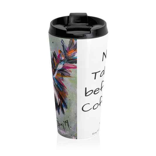 No Talkie before Coffee! Distorted Face Blonde Stainless Steel Travel Mug