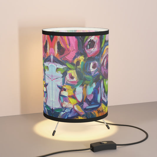 Bee Happy Wine Bee and Roses Tripod Lamp