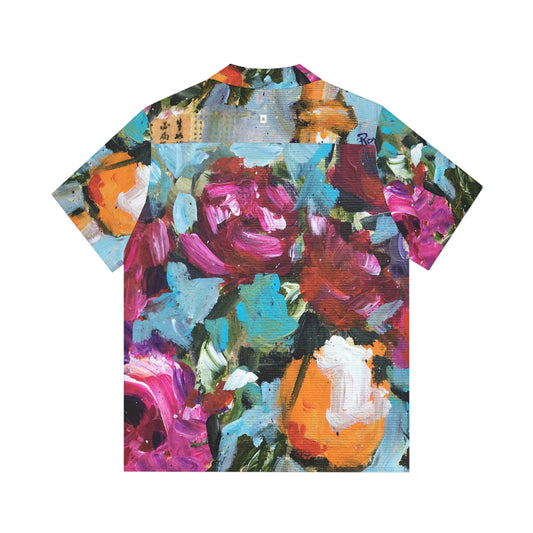 Roses in an Orange Goblet Original Art Flowers Men's Hawaiian Shirt