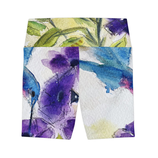 Women's Workout Shorts - Hummingbird in Purple Tube Flowers