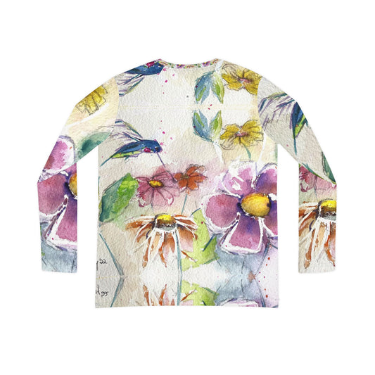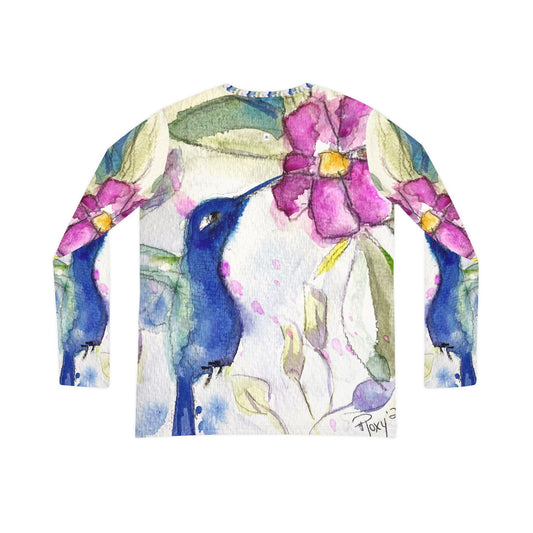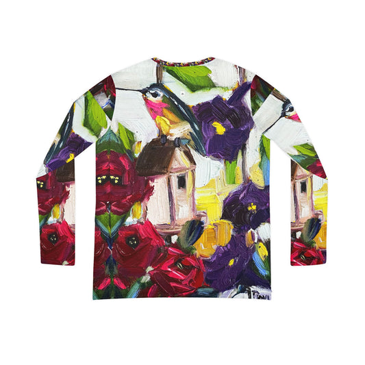 Long Sleeve Shirt- Hummingbird in the Garden- V-neck Women's