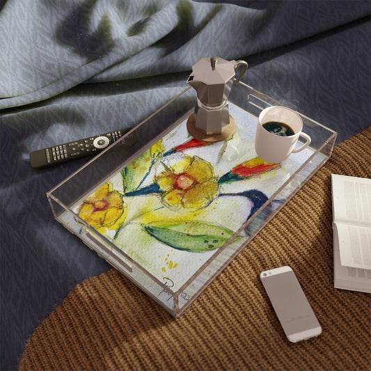 Bandeja Acrílica Colibrí en flores de tubo amarillo