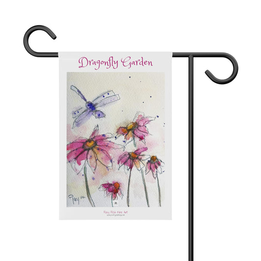 Lona Libélula caprichosa en el jardín de Coneflowers rosados