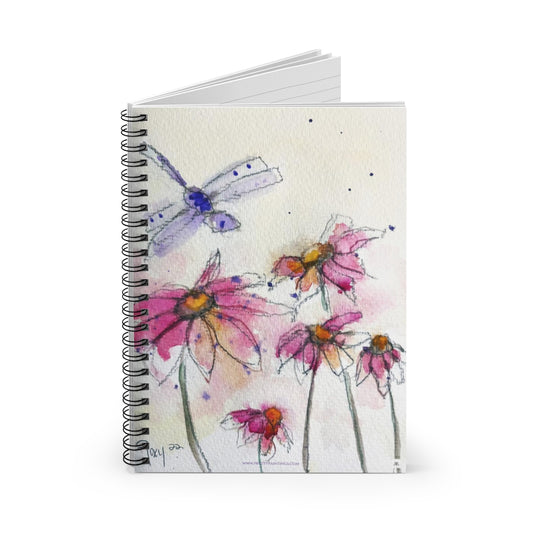 Caprichosas Libélula Púrpura Rosa Coneflowers Cuaderno de espiral