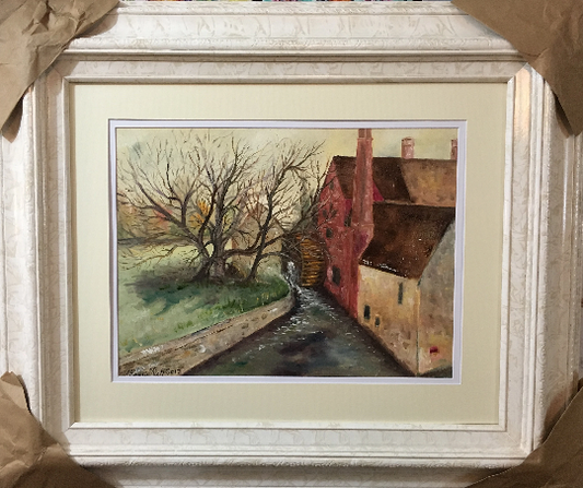 El antiguo molino en Lower Slaughter-Original Cotswold pintura al óleo enmarcada