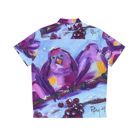 Men's Hawaiian Shirt-Three Chirpy Winter Birds