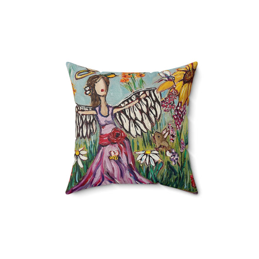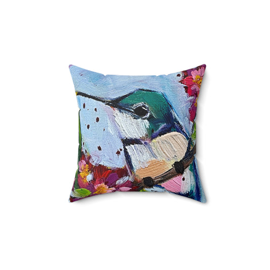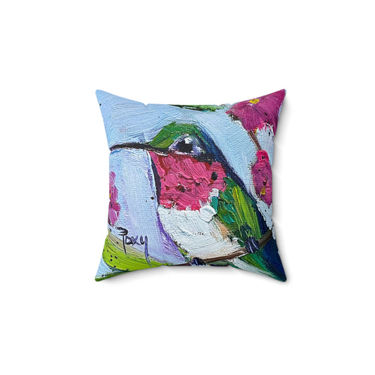 Happy Little Floater Hummingbird Indoor Spun Polyester Square Pillow