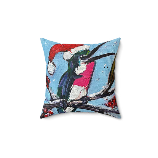 Merry and Bright Holiday Hummingbird Indoor Spun Polyester Square Pillow