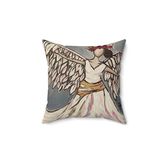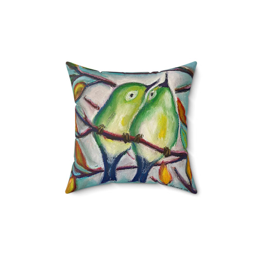 Almohada cuadrada de poliéster hilado para interiores con currucas abrazadas