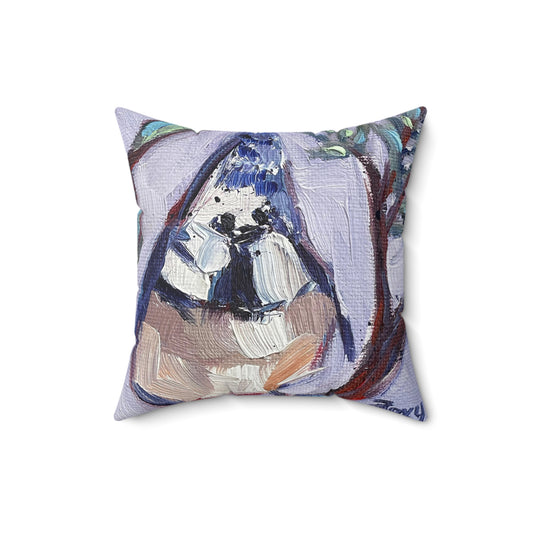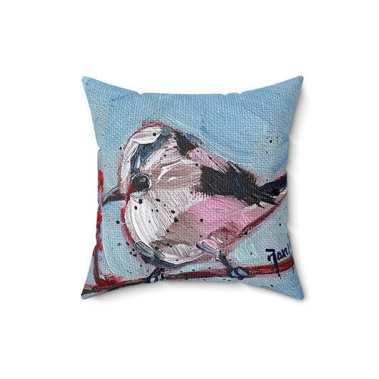 Almohada cuadrada de poliéster hilado para interiores Fat Little Long Tailed Tit