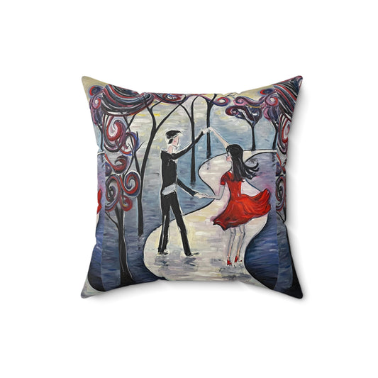 Bailando a la luz de la luna (pareja romántica) Almohada cuadrada de poliéster hilado para interiores