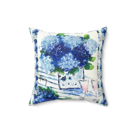 Almohada cuadrada de poliéster hilado para interiores Bue Hydrangeas