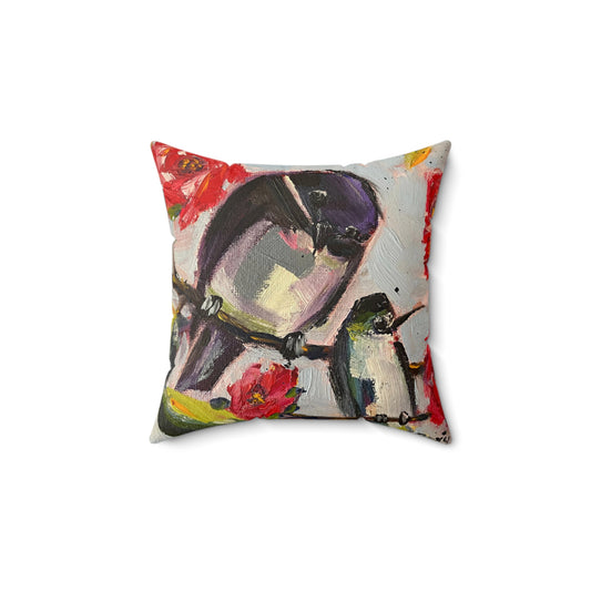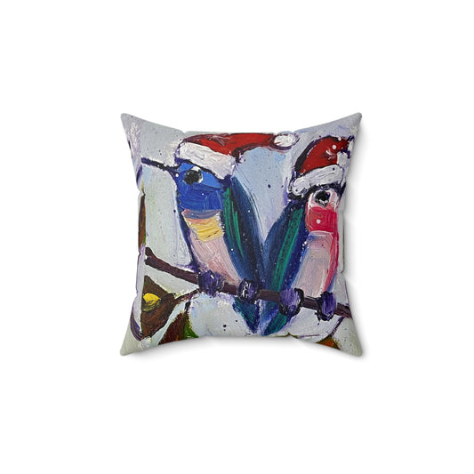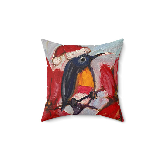 Almohada cuadrada de poliéster hilado para interiores con colibríes navideños