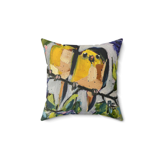 Almohada cuadrada de poliéster hilado para interiores Morning Glory Goldfinches