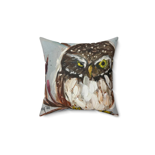 Almohada cuadrada de poliéster hilado para interiores de búho pigmeo