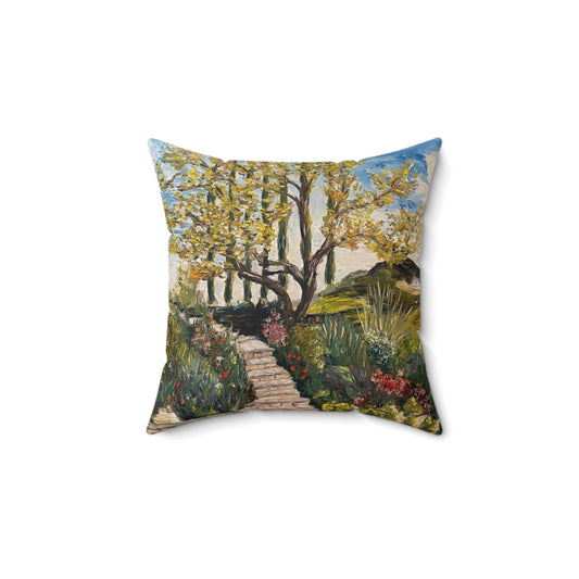 Árbol y jardín en GBV Almohada cuadrada de poliéster hilado para interiores