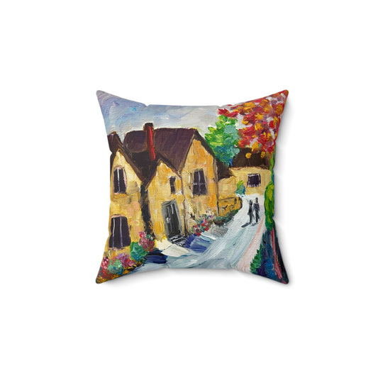 Encantadoras cabañas medievales Cotswolds Village almohada cuadrada de poliéster hilado para interiores
