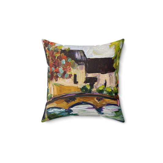 Bourton on the Water in Autumn Cotswolds Almohada cuadrada de poliéster hilado para interiores