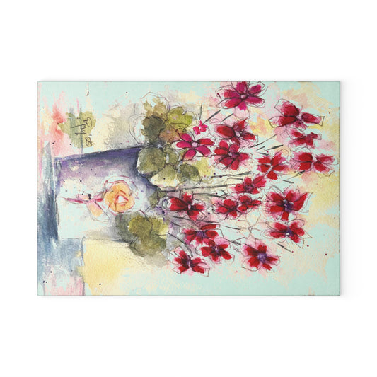 Tabla de cortar de vidrio Geranios de hiedra roja en una cesta