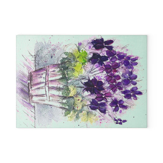 Tabla De Cortar De Vidrio Geranios de hiedra púrpura en una cesta