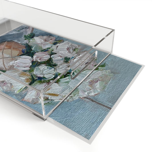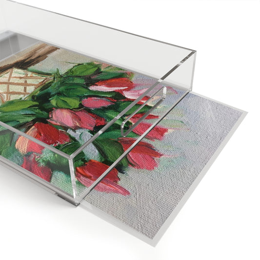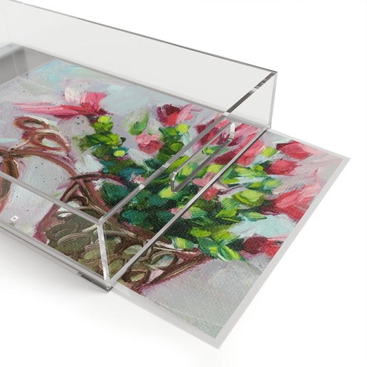 Bandeja de servicio de acrílico Ciclamen en una cesta