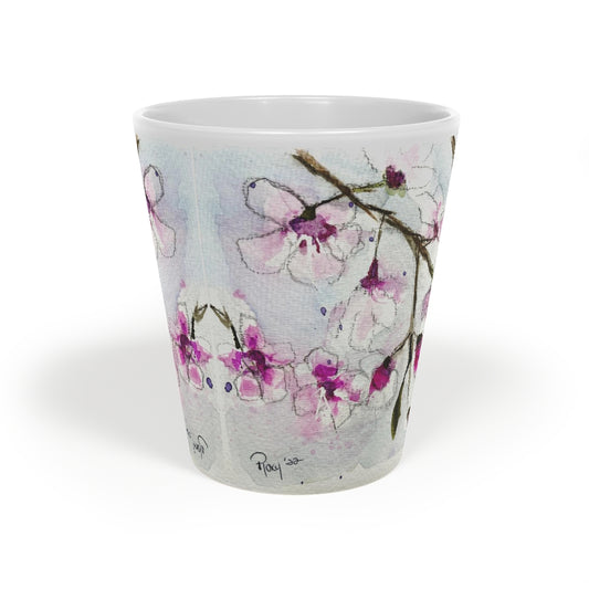 Taza de café con leche con flores de cerezo rosa esponjosa, 12 oz