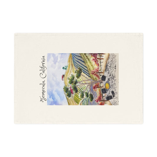 Toalla de té de algodón vegano orgánico Pintura original de Temecula California Wine Country Landscape impresa en ella.