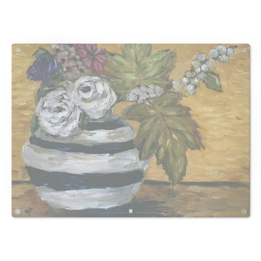 Tabla de cortar de vidrio Rosas en un jarrón a rayas