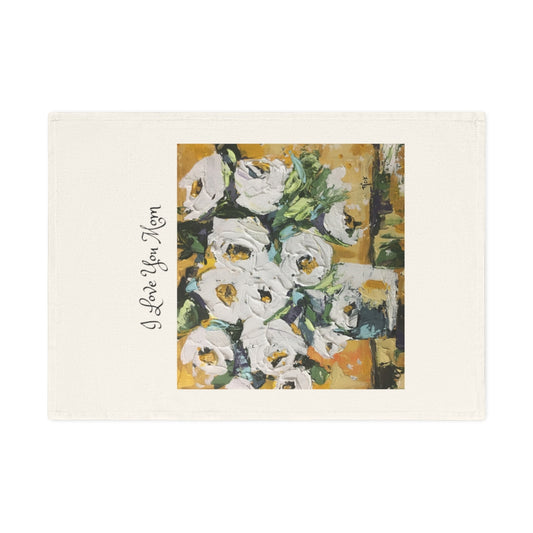 Te amo mamá toalla de té de algodón vegano orgánico con pintura original de arte moderno estampado Shabby Roses Flowers