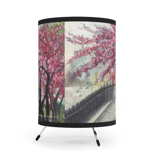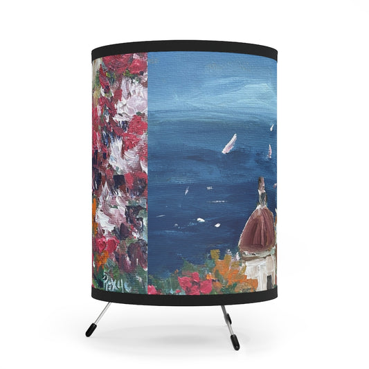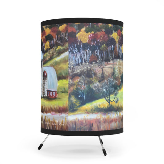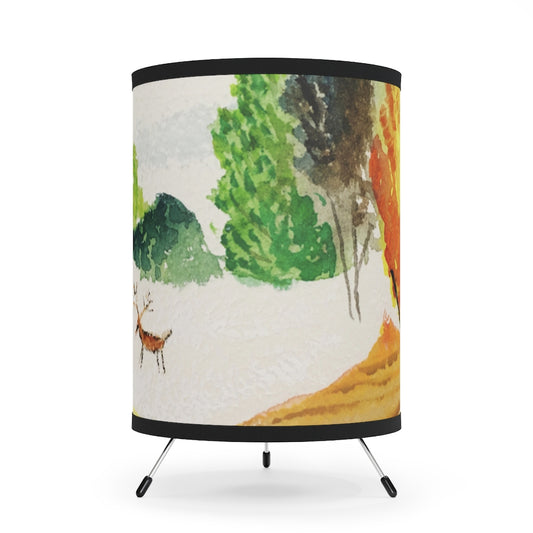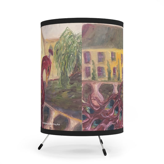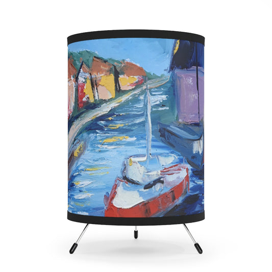 Pintura original del paisaje del pueblo holandés sobre lámpara trípode con pantalla impresa de alta resolución, enchufe USCA