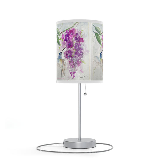 Lámpara de colibrí y glicina rosa sobre soporte, enchufe EE. UU.|CA