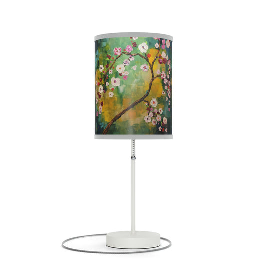 Lámpara abstracta con flores de cerezo sobre un soporte, enchufe EE. UU.|CA