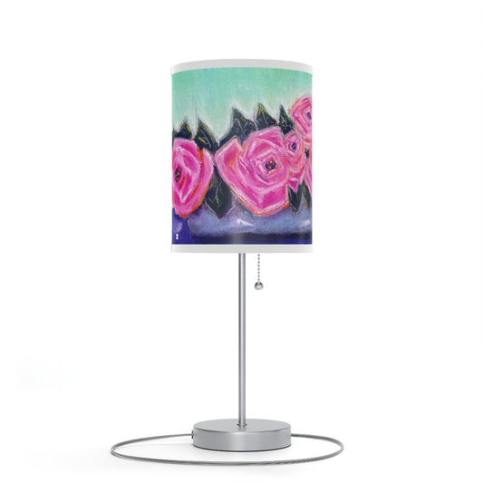 Lámpara de hojalata llena de rosas con soporte, enchufe US|CA