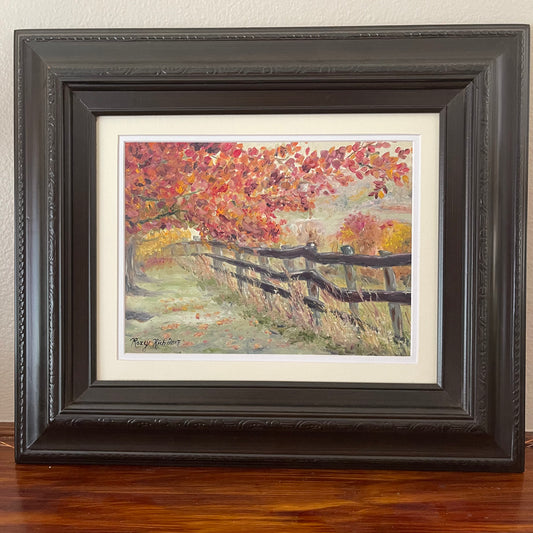 The Rickety Fence Pintura original de paisaje al óleo de Cotswolds enmarcada