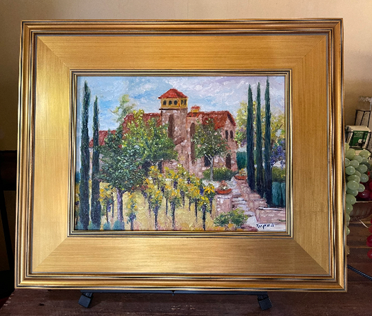 Lorimar Winery-Original Impresionismo Contemporáneo Pintura de Paisaje Al Óleo Enmarcada