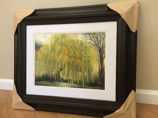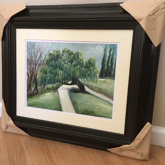 Willow in the Park Pintura original de paisaje al óleo enmarcada