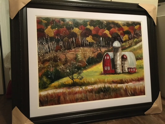 La pintura original del paisaje al óleo de los Silos enmarcada