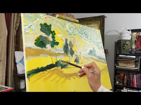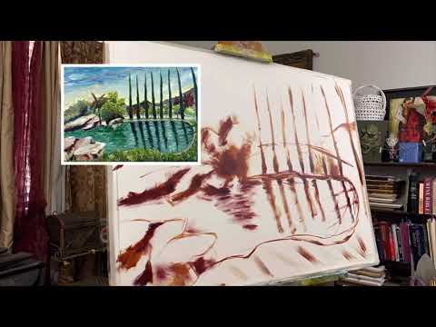 Atardecer en la Villa (Gershon Bachus Vintners) Pintura original de paisaje al óleo enmarcada
