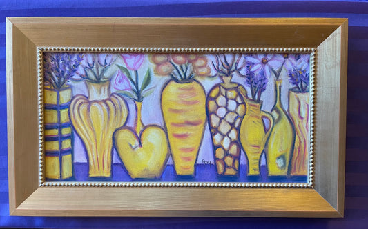 Yellow Vases-Original Oil Pastel Painting 10 x 20 Framed